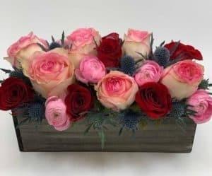 Simbolul real al dragostei și romantismului, trandafirii sunt greu de învins atunci când doriți să trimiteți un cadou romantic, din inimă. Aceste flori superbe, elegante și parfumate vin într-o varietate de culori. Roșul, desigur, simbolul pasiunii, iubirii și dorinței, dar și în alte culori cu rezultate la fel de uimitoare. De exemplu, o grădină romantică de trandafiri este o preluare izbitor de modernă a buchetului tipic de trandafiri. Trandafiri roșii și roz grupați cu ranunculus roz și mușchi sunt combinația perfectă pentru o impresie de neuitat